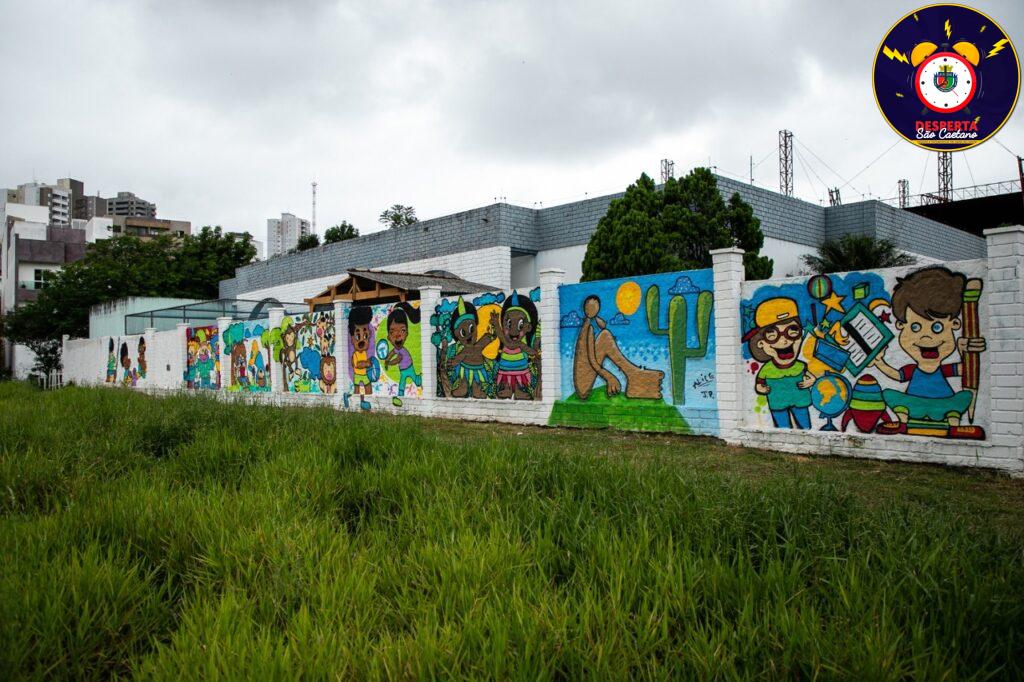 Contando com a participação do artista plástico Marcelo Silva Dantas, que ministra oficina de graffiti na Estação Cultura (R. Serafim Constantino, s/n – Centro), a escola resolveu adotar a arte de rua como assunto na sala de aula, ensinar a diferença entre pichação e graffiti e embelezar o muro da escola com motivos sugeridos pelas crianças.