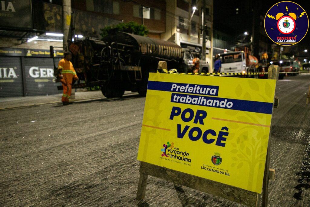 Um dos mais importantes polos comerciais de São Caetano do Sul, a Rua Visconde de Inhaúma está ganhando cara nova. Dentro do programa de revitalização da via, foi iniciado o recapeamento de toda a sua extensão. O prefeito José Auricchio Júnior acompanhou os trabalhos na noite de terça-feira (12/4), ao lado do deputado estadual Thiago Auricchio.
