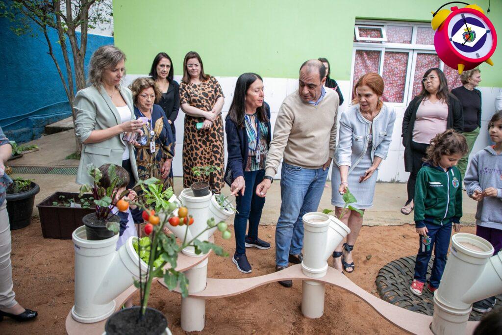 O chefe do Executivo conversou com professores e pais de alunos sobre o programa e conheceu as instalações da horta que está sendo criada pela equipe da diretora Julce Lopes Uliana, com a consultoria do curso de Arquitetura da USCS.