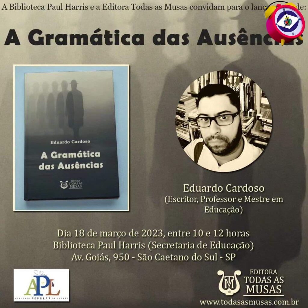 A Gramática das Ausências, de Eduardo Cardoso, Editora Todas as Musas. Livro de contos, A Gramática das Ausências, utiliza diferentes técnicas narrativas para narrar histórias diversas unidas por um fio-condutor: a filosofia, o espanto do ser humano diante da vida. “Será que as pessoas pensam como eu penso? Conseguem manter um diálogo consigo mesmas e se manterem lúcidas?”, pergunta uma das personagens do livro. Professor de Língua Portuguesa, pós-graduado em Filosofia e Pensamento Político, Eduardo Cardoso confronta o leitor com várias questões e símbolos, como o duplo, o espelho e o sentido para a vida.