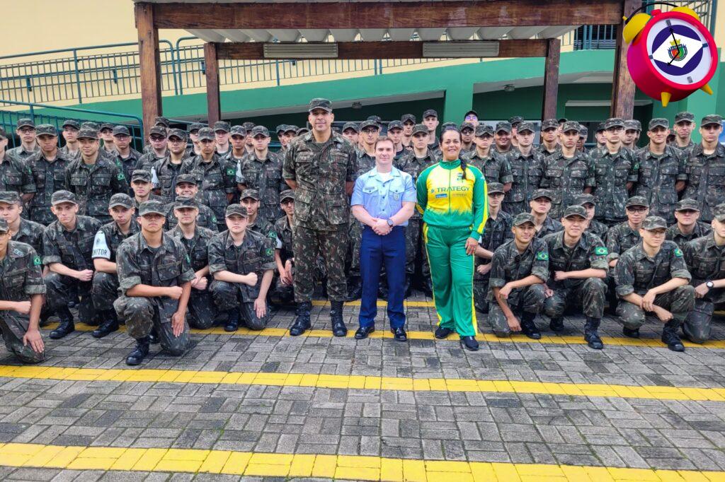 7 de novembro de 2023O campeão olímpico e mundial de ginástica artística, Arthur Zanetti, e a hexacampeã mundial de powerlifting, Patrícia Cândido, foram ao TG 02-069, Tiro de Guerra de São Caetano, para palestrar aos atiradores de 2023. A palestra, que teve como tema o esporte de alto rendimento e foco no aprimoramento de valores cívicos e cidadania, aconteceu no dia 1° de novembro, na sede da instituição do Exército.