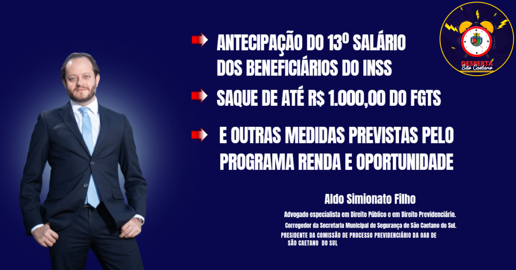 ANTECIPAÇÃO DO 13º SALÁRIO DOS BENEFICIÁRIOS DO INSS, SAQUE DE ATÉ R$ 1.000,00 DO FGTS E OUTRAS MEDIDAS PREVISTAS PELO PROGRAMA RENDA E OPORTUNIDADE