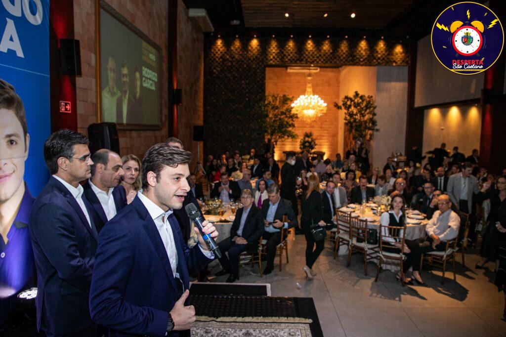 O deputado estadual Thiago Auricchio e o prefeito Auricchio promoveram, na noite de terça (19), um jantar com cerca de 300 empresários e lideranças de São Caetano do Sul com o governador Rodrigo Garcia.