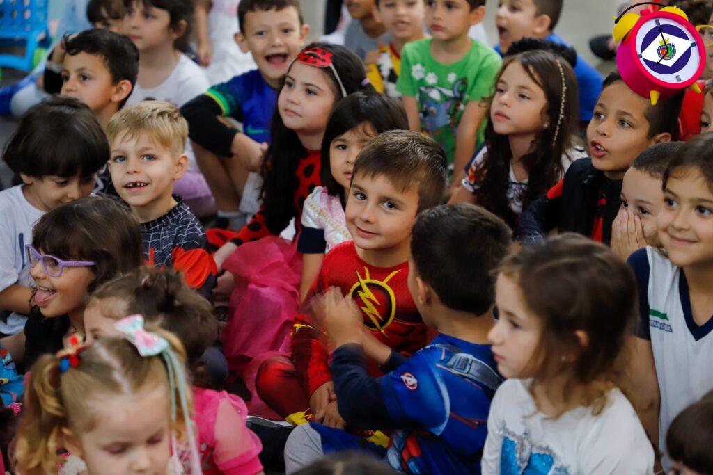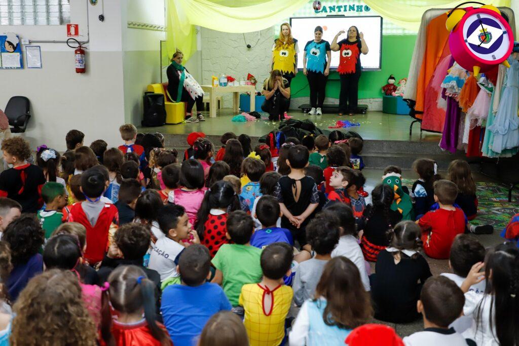 Na EMEI Antonio de Oliveira (Bairro Santa Maria), por exemplo, hoje foi dia de deixar a criatividade fluir. Vestidas com fantasias ou com suas roupas favoritas, as crianças assistiram a uma peça de teatro baseada no livro O Monstro das Cores, na qual a personagem principal tem dificuldades em lidar com as próprias emoções.