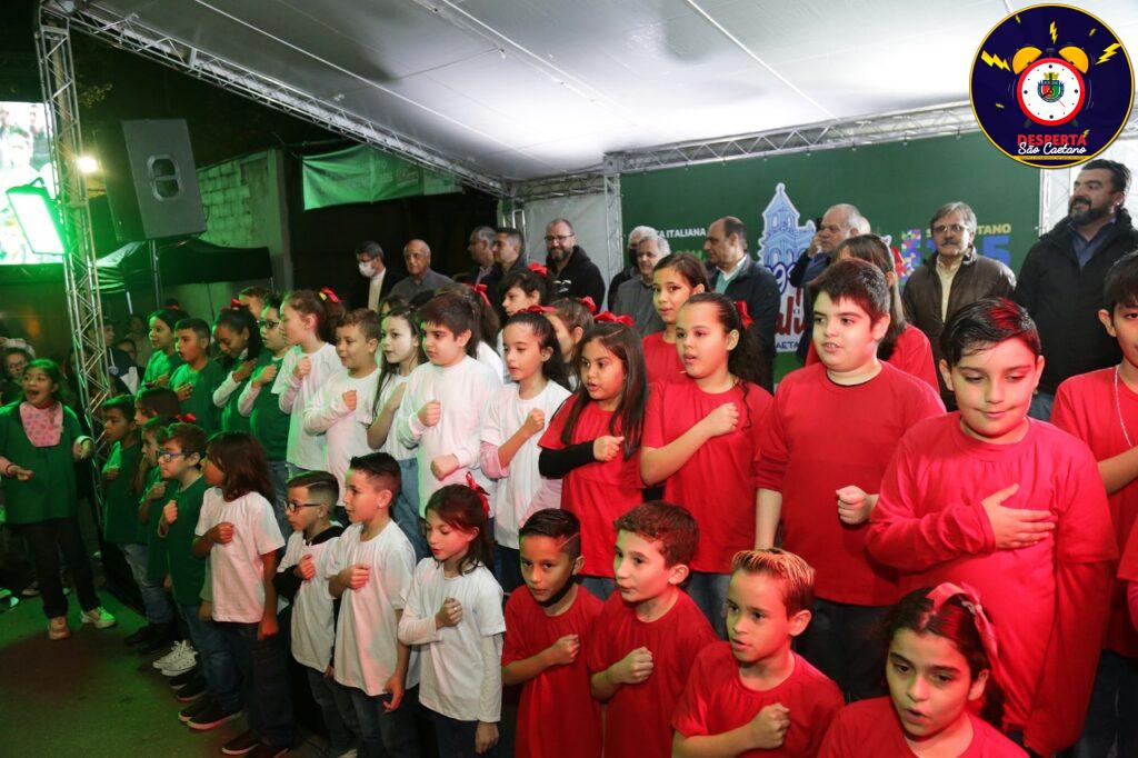 A abertura oficial, feita pelo prefeito José Auricchio Júnior, contou com a presença de alunos da EMEF (Escola Municipal de Ensino Fundamental) Senador Fláquer, que abriram a cerimônia cantando Il Canto degli Italiani (O Canto dos Italianos), como é conhecido o Hino Nacional da Itália.