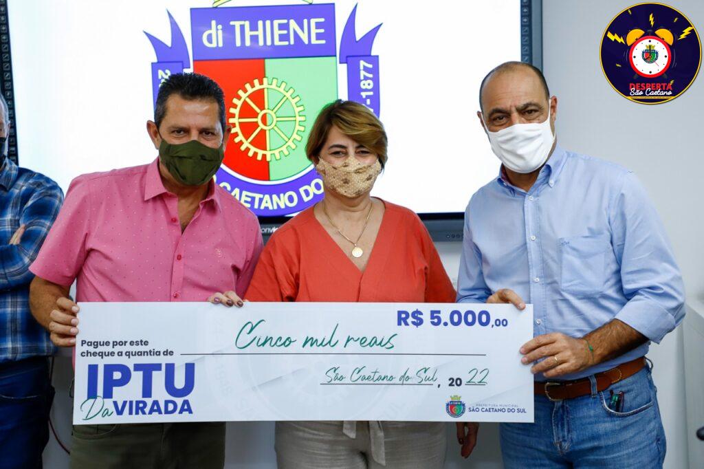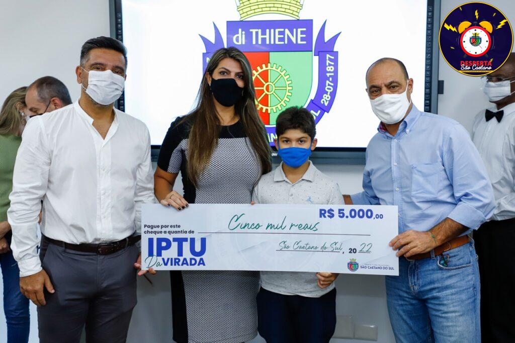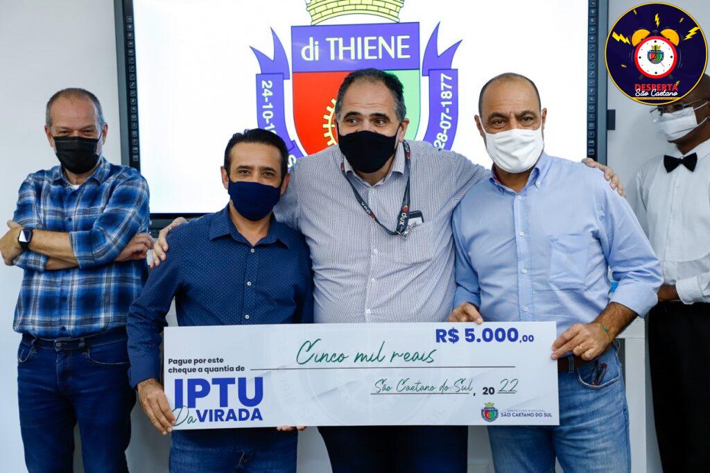 18 de fevereiro de 2022Esta sexta-feira (18/2) foi de comemoração para os oito contribuintes de São Caetano do Sul contemplados com os prêmios de R$ 5 mil e R$ 30 mil do programa IPTU da Virada. Os prêmios foram sorteados entre os que estavam com o pagamento do IPTU (Imposto Predial e Territorial Urbano) em dia. O sorteio foi realizado no dia 31 de dezembro de 2021, com base na extração da Loteria Federal.