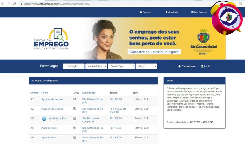 As vagas apresentadas já estão publicadas no Portal do Emprego (portaldoemprego.saocaetanodosul.sp.gov.br). Os interessados deverão comparecer munidos de RG, CPF, Carteira de Trabalho e/ou currículo atualizado.