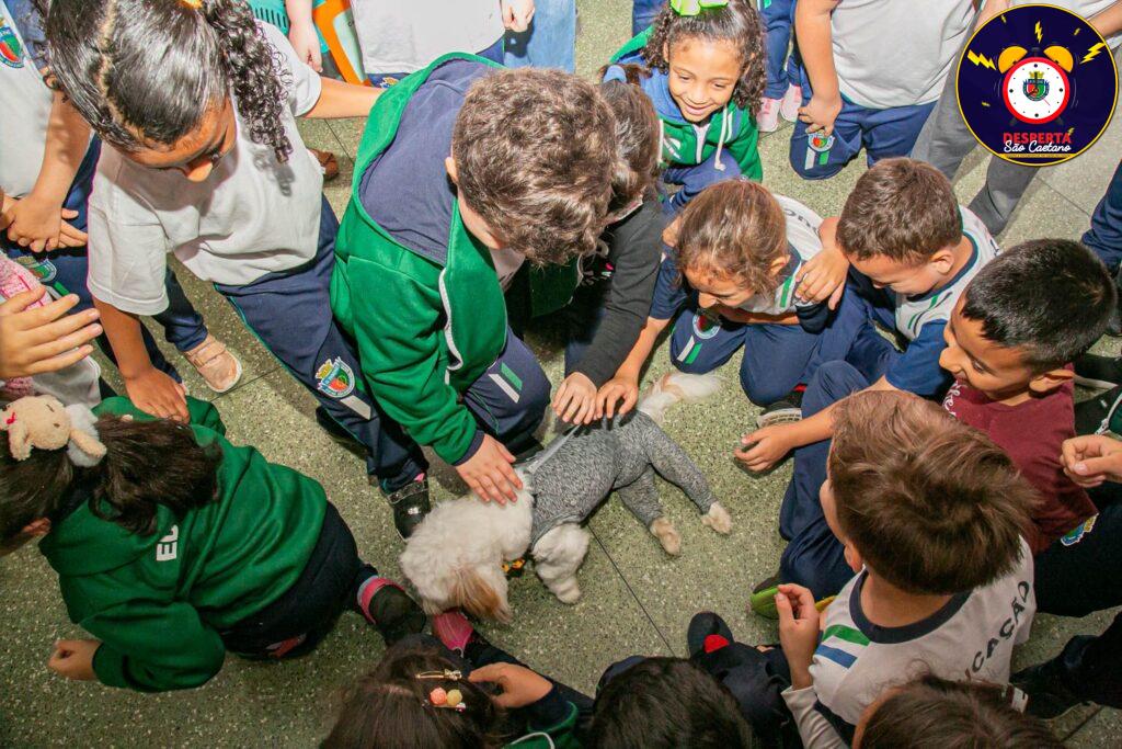 Em uma roda de conversa, as veterinárias puderam conversar e interagir com aproximadamente 70 crianças e, ludicamente, ensinar que os animais são seres sencientes: sentem fome, sede, frio, dor. Que têm necessidades de passeios, de ir ao veterinário. “Contamos a história do Fred , que a antiga família deixou cair da escada quando ele tinha apenas 90 dias e, por negligência, não deram atendimento veterinário. Por falta desse socorro, o Fred ficou paraplégico. Mostramos que mesmo ele sendo paraplégico ele superou as dificuldades, hoje tem uma família, é muito bem cuidado, muito alegre e ama muito os seres humanos”, explicou a subsecretária de Saúde e Bem-Estar Animal, Alexandra Gimenez da Costa.