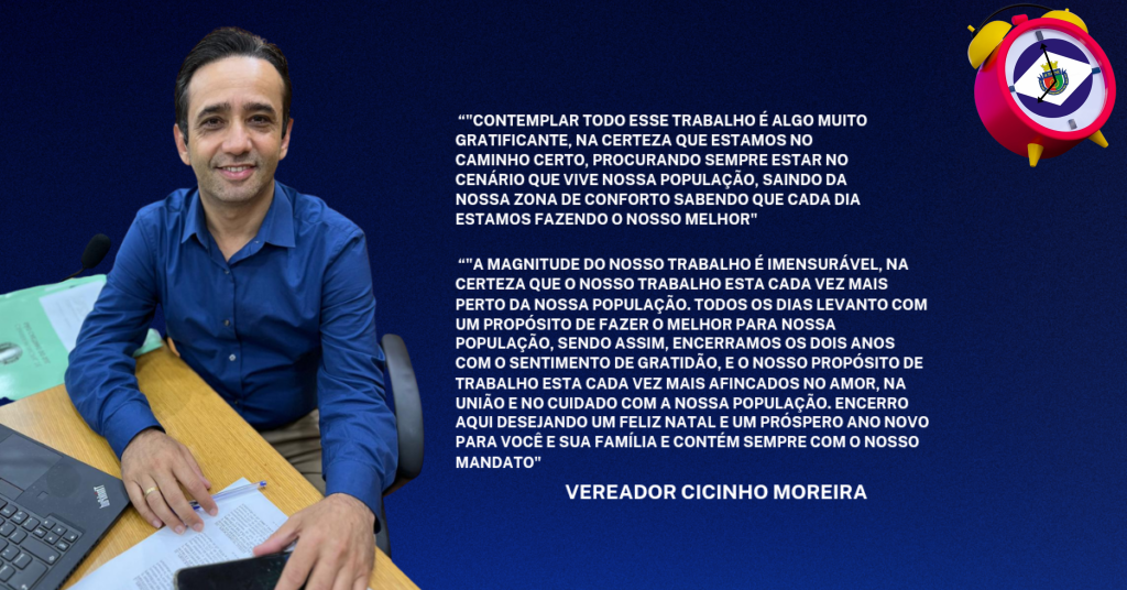 Os atendimentos a população é destaque fundamental que prepondera em uma atuação de uma vereança, e nesses dois últimos anos o Vereador Cicinho Moreira prestou mais de Seis mil atendimentos a nossa população. “A magnitude do nosso trabalho é imensurável, na certeza que o nosso trabalho esta cada vez mais perto da nossa população. Todos os dias levanto com um propósito de fazer o melhor para nossa população, sendo assim, encerramos os dois anos com o sentimento de gratidão, e o nosso propósito de trabalho esta cada vez mais afincados no amor, na união e no cuidado com a nossa população. Encerro aqui desejando um Feliz Natal e um Próspero Ano Novo para você e sua família e contém sempre com o nosso mandato”, finaliza o Vereador Cicinho Moreira.